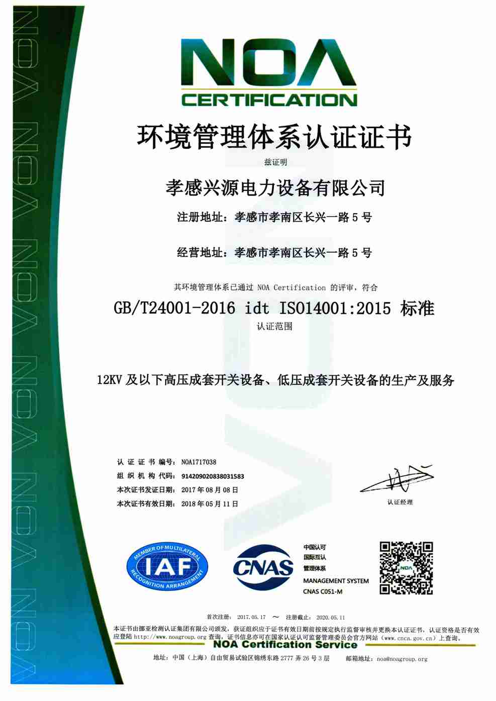 • 環(huán)境管理體系證書